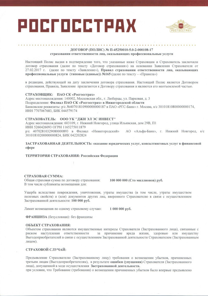 ООО «УК «Джи Эл Эс Инвест» не является финансовым учреждением, не осуществляет деятельности по управлению инвестиционными фондами, паевыми инвестиционными фондами и негосударственными пенсионными фондами, не является банком или кредитором и поэтому не выдает займы и кредиту населению. Вся представленная на сайте информация носит информационный характер и не является публичной офертой, определяемой положениями ст. 437 (2) ГК РФ. Для получения подробной информации обращайтесь по адресу: 603000, г. Нижний Новгород, ул. Дальняя, д.8, второй этаж, 8 (831) 242-82-50.